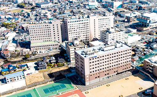 地域の基幹病院として「プライマリケアから高度医療まで」「予防医学から救急医療まで」幅広い分野を網羅。特に救急医療は、救急外来やICU、HCU(高度治療室)などの急性期部門をD棟に集約。充実した医療を提供しています。