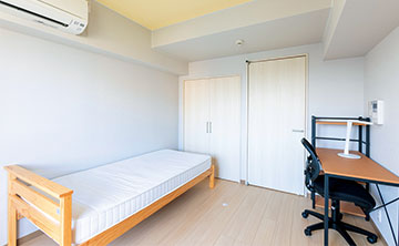 全室個室、1人暮らしに必要な家電や机なども完備!