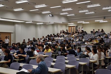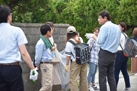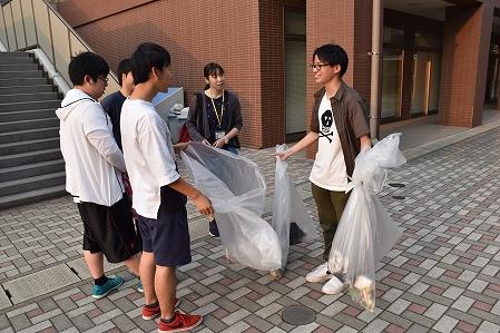 大川キャンパスの1年生が中心となり、授業終了後の18:00より本学の大講義室に集合し、学友会会長からの説明を受けた後に、キャンパス近隣を教職員とともに清掃活動を行いました。