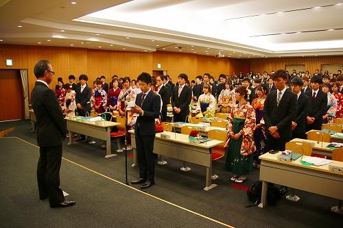 学位記授与式後、学科別に分かれての学位記伝達式が行われ、卒業者一人ひとりへ学位記が授与されました。