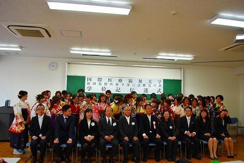 会場入り口では、「学位記授与式」の大きな看板を囲んで、保護者や4年間苦学をともにした仲間たちと記念写真を撮っている姿が見られました。これからの医療の一端を担う一人ひとりの将来が、輝かしく希望に満ちたものになることを願っています。