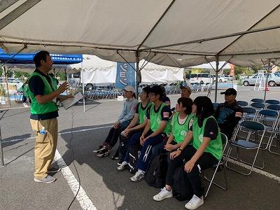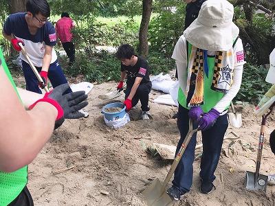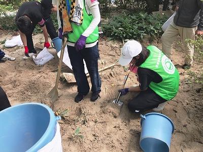 ボランティアに参加した留学生のコウ・イシンさん(理学療法学科1年)は、「世の中の役に立ちたいと思い、今回の災害ボランティアに参加しました。支援センターの指示でおばあさんが住んでいる民家で作業をしました。庭には地面から30センチを超えるほど土砂が流入していました。シャベルで土を掻き出し土のうに詰めてトラックで運び出す作業は本当に重労働で、これはおばあさんでは無理だ、自分たちががんばらないといけないと思いました。」と当日の様子を語ってくれました。また、コウさんは「災害はないに越したことはないけれど、また役に立てる機会があれば参加したい。」とも話してくれました。