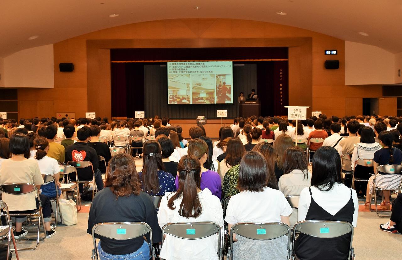 9/19(木)には、研修を終えた2年生による海外研修の成果報告会が行われました。学生は各研修先の特色や海外経験から得た学びを発表しました。報告会には次年度に海外研修を控える全1年生が出席し、先輩の発表を真剣に聞き入っていました。