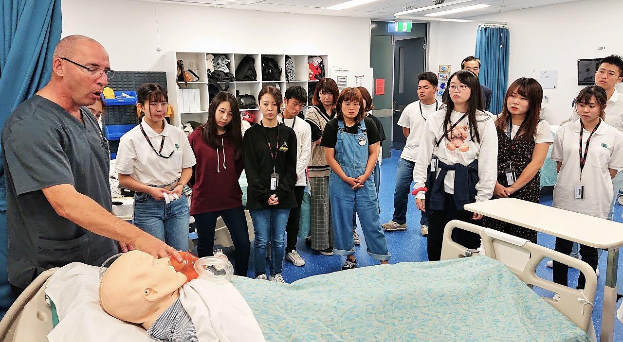 【オーストラリア ゴールドコースト】受入施設であるTAFE(Technical And Further Education)は、オーストラリアの公立高等教育機関で、オーストラリア全土で100以上のキャンパスを持ちます。写真はTAFEゴールドコースト校で心肺蘇生法の演習を行っている様子です。
