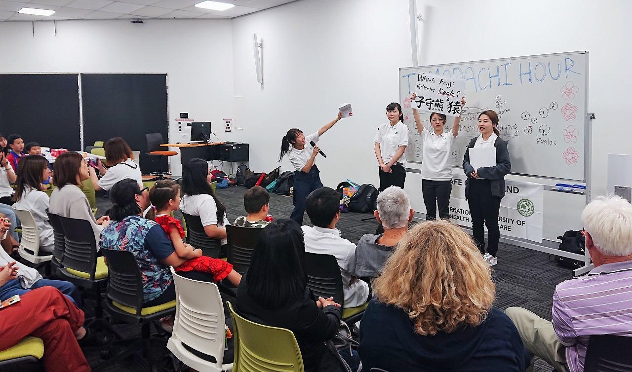 【オーストラリア ゴールドコースト】研修終盤にはお世話になったホストファミリーをTAFEにお招きし、「TOMODACHI HOUR」として漢字当てクイズを行いました。“「子守熊」 「猿」、コアラを意味する漢字はどちらでしょうか?”