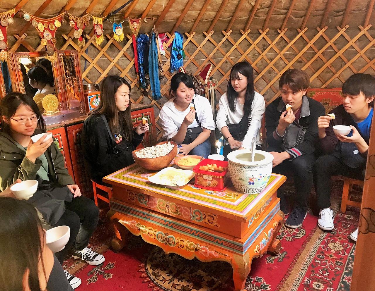 【モンゴル】研修地のウランバートルからバスで数時間、テレルジ国立公園ではゲル泊を体験。悠大な大自然に囲まれながら遊牧民の生活を体験しました。