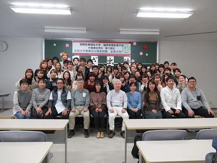 国家試験まであと残り2日となる2月21日(金)に、国家試験壮行会(本学科では出陣式)を開催しました。後輩からの応援、教員からの激励の言葉、全てを受け止め国家試験に臨んだことと思います。国家試験の模試では常に全国平均よりプラス20点以上をとってきた彼らです。3月23日(月)の合格発表ではきっと良い結果が待っていると思います。