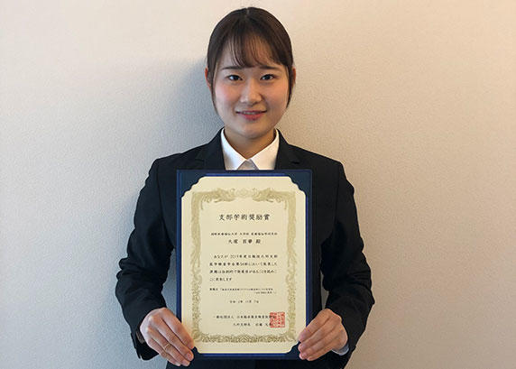 本学大学院臨床検査学分野で学ぶ大塚百華さんの研究発表が、日臨技九州支部の支部学術奨励賞を受賞