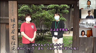 続いて大川の庄分酢や旧吉原家住宅という名所旧跡のバーチャル見学を行いました。庄分酢、旧吉原家ともに、ガイドの方々のクイズを交えた解説で進行しました。学生にはあまり知られていない大川の歴史と文化、隠れた魅力に触れる機会となりました。