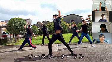 クライマックスは、留学生と日本人学生たちがコラボで仕上げたミュージックアワーです。日本人学生の盆踊りの紹介に続いて、留学生と日本人学生混成のダンスチームがソーラン節を披露すると、その動きの激しさや軽快なリズムに手拍子をたたいて楽しむ留学生もみられました。最後は学生有志による楽器演奏、「パプリカ」の合唱で幕を閉じました。