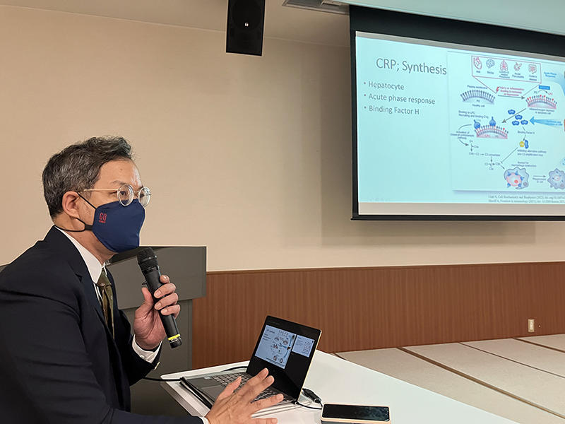 タイ国マヒドン大学熱帯医学部より Supat Chamnanchanunt 准教授、本学成田キャンパス医学検査学科より竹内 啓晃 教授をお招きし、Supat先生には「High sensitivity CRP as a prognostic biomarker in COVID-19」、竹内先生には「Helicobacter pylori and extra-gastric disorders」と題しご講演をいただきました。